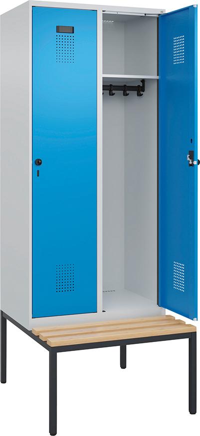 Garderobenschrank Evolo PLUS mit untergebauter Sitzbank (Holzleisten)