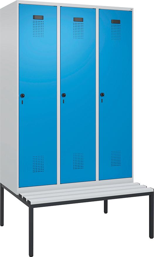 Garderobenschrank Evolo PLUS mit untergebauter Sitzbank (Kunststoffleisten)