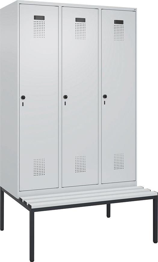 Garderobenschrank Evolo PLUS mit untergebauter Sitzbank (Kunststoffleisten)