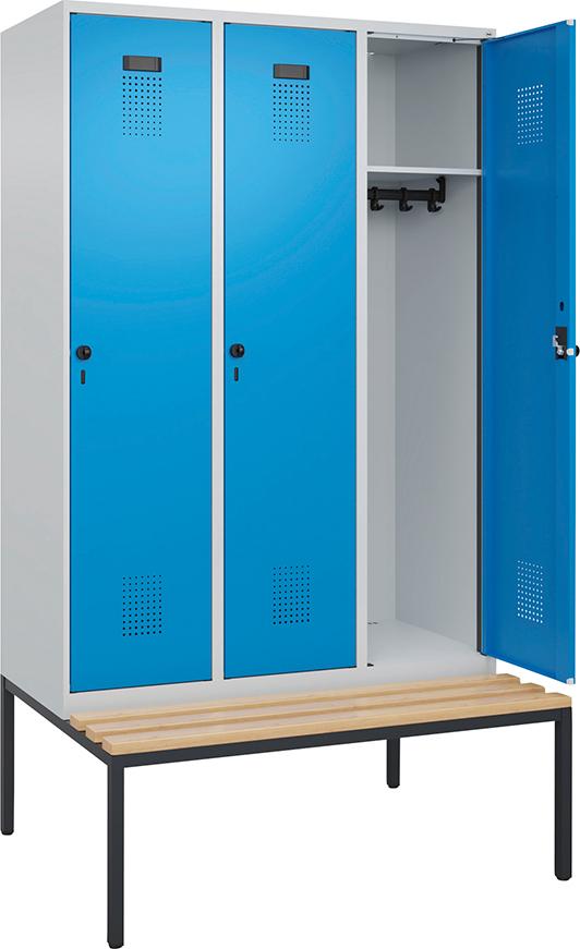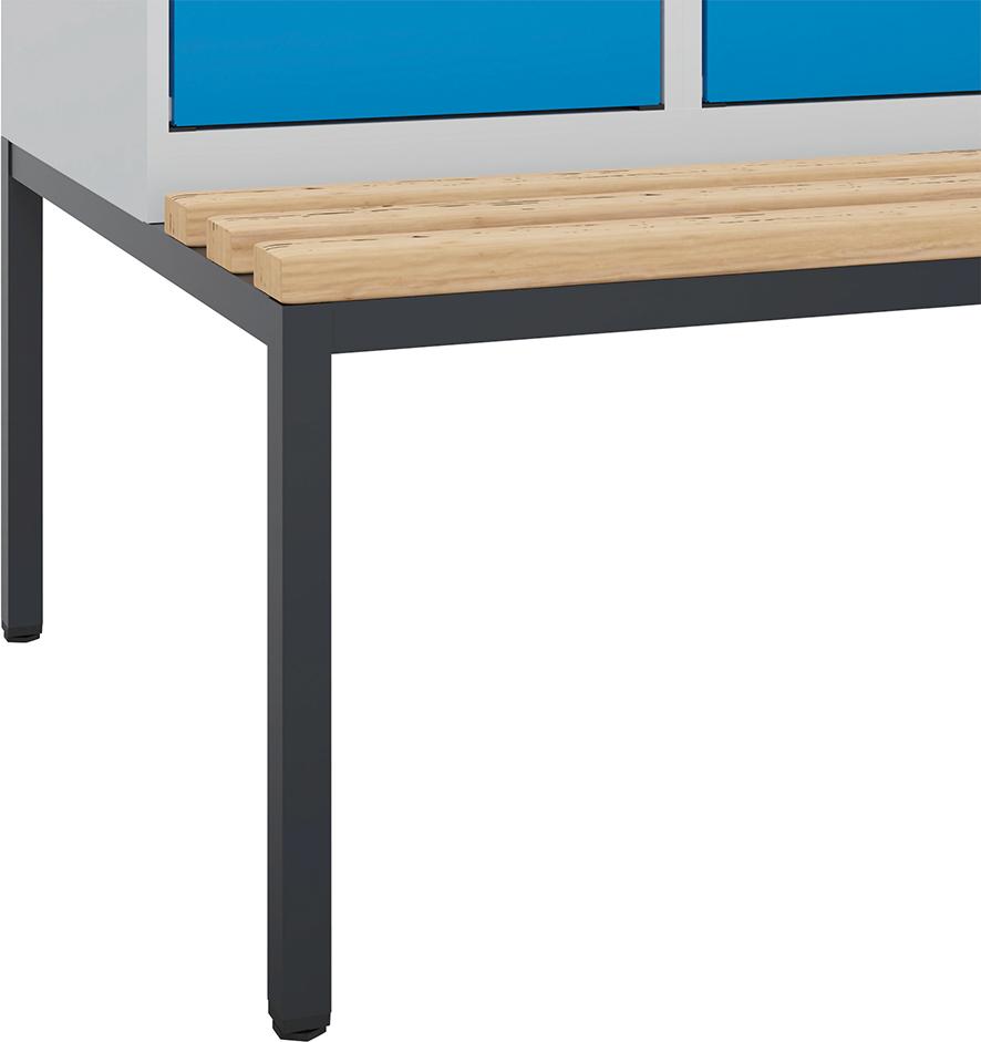 Garderobenschrank Evolo PLUS mit untergebauter Sitzbank (Holzleisten)
