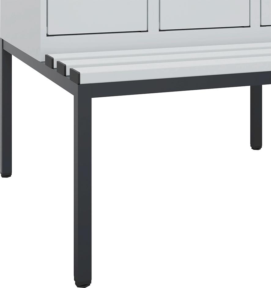 Garderobenschrank Evolo PLUS mit untergebauter Sitzbank (Kunststoffleisten)