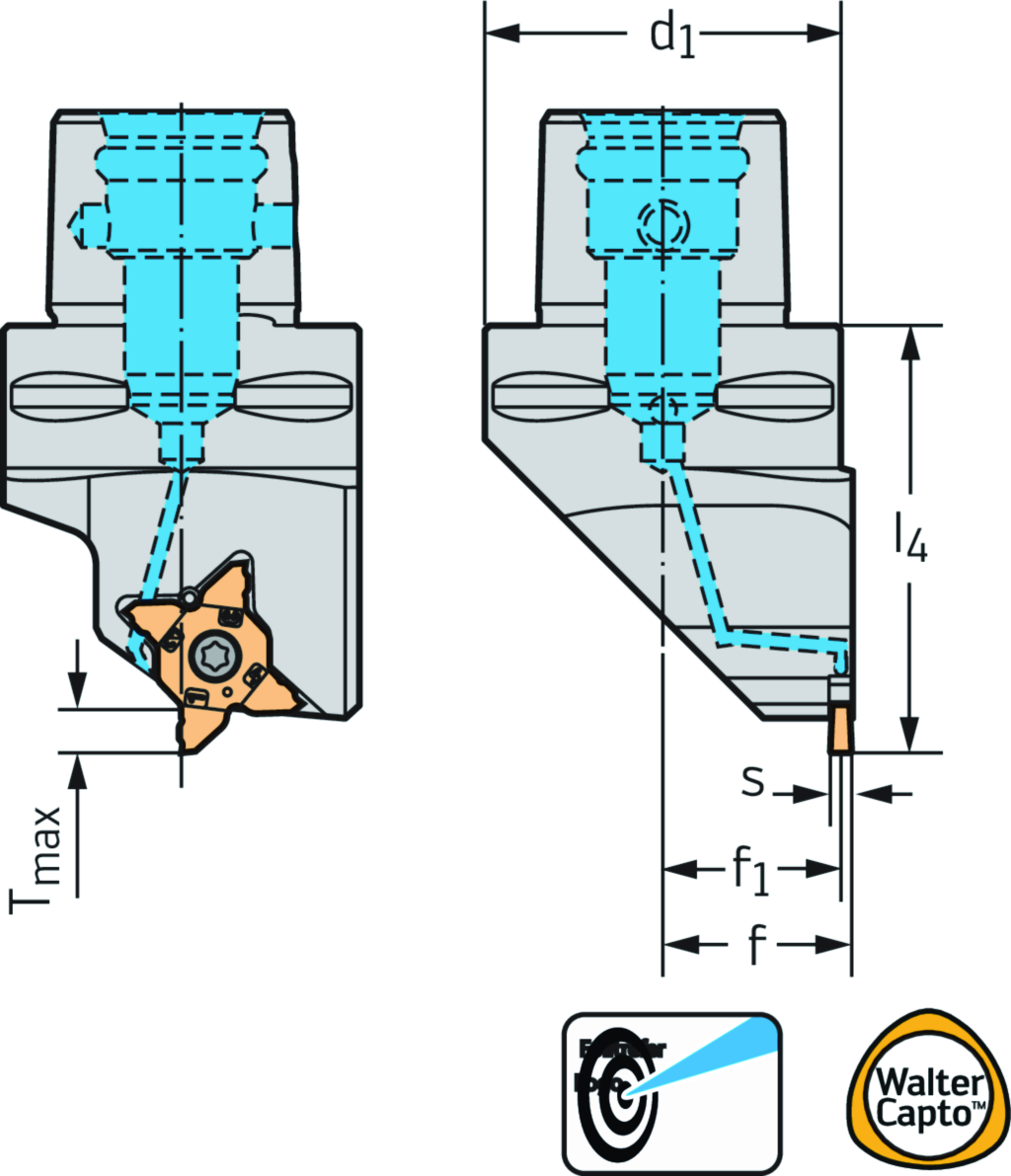 Stechhalter – Radialstechen G3011-C...-P • Walter CaptoTM • Schraubenklemmung • metrisch • Walter CaptoTM ISO 26623 • rechts • MX22 • s=4mm • Tmax=6mm