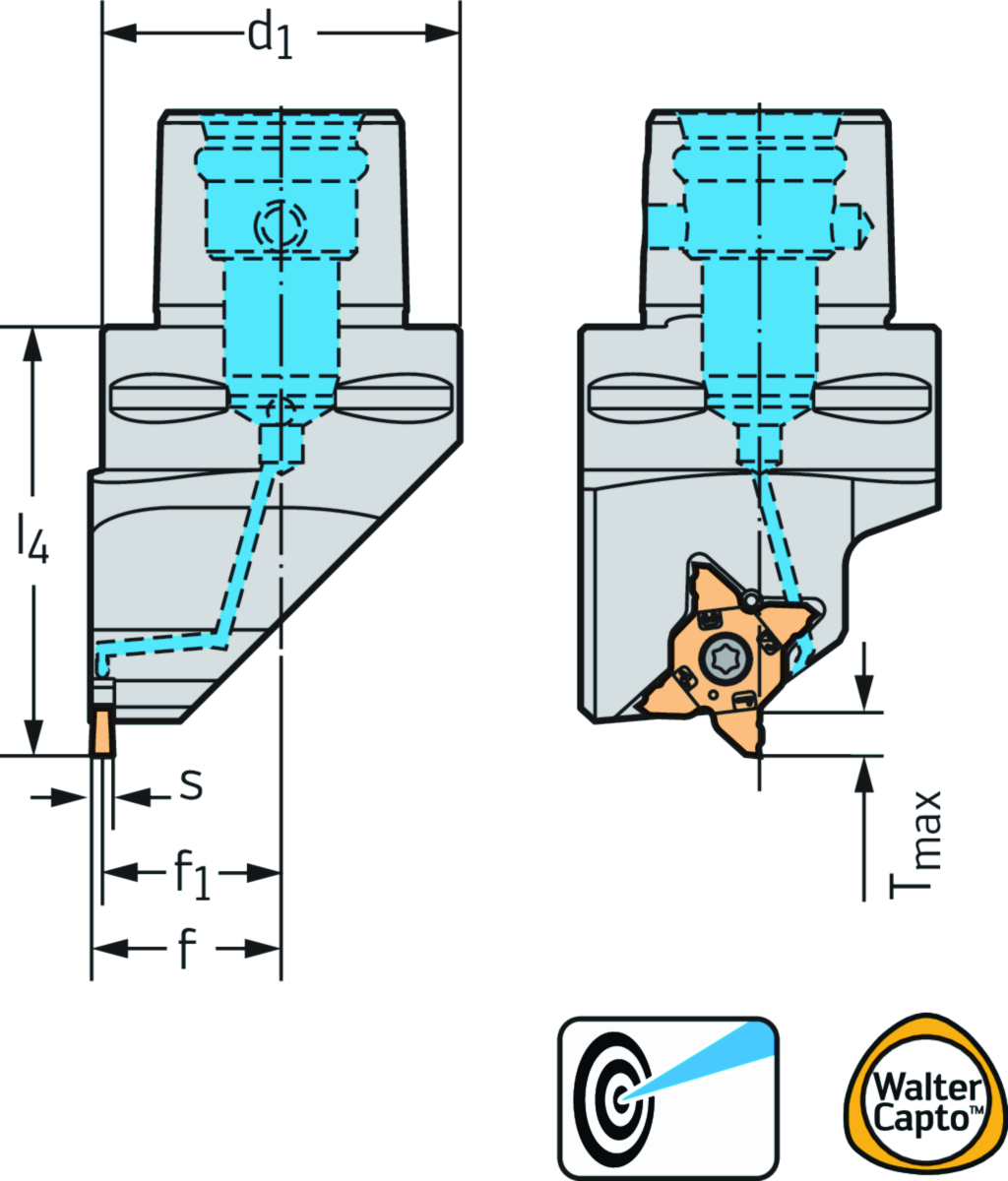Stechhalter – Radialstechen G3011-C...-P • Walter CaptoTM • Schraubenklemmung • metrisch • Walter CaptoTM ISO 26623 • links • MX22 • s=4mm • Tmax=6mm