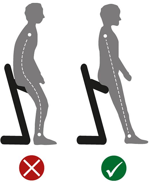 Diese Stehhilfen sind klappbar und dadurch sehr platzsparend. Sie sind für die leichte Beanspruchung einsetzbar. • Sitzfläche: PU-Schaum, pflegeleicht, mit ausgeprägten Klimakanälen • Sitzhöhen-Einstellung: 610–860 mm, arretierbar in 9 Rastpositionen • Sitzneigung: 2°–8°, stufenlos verstellbar, um 17° schwenkbar • Untergestell: pulverbeschichtetes Stahlrohr, inkl. rutschfester Bodengleiter • Belastbarkeit: für Personen bis 80 kg