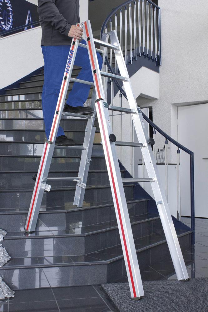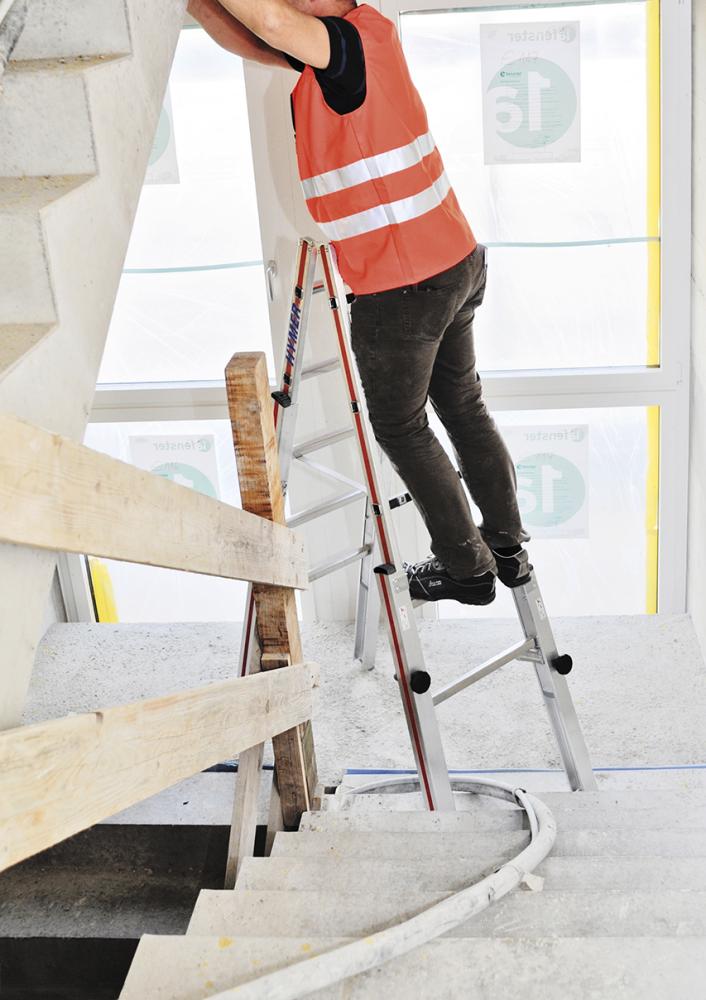 Die Treppenstehleiter ist nahezu unbegrenzt auf Treppen und im unebenen Gelände einsetzbar.