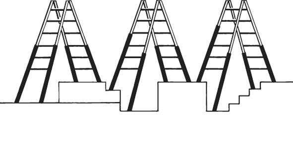 • Hinweis: Auf- und Abstieg immer auf dem Leiterteil mit den kurzen Verlängerungen!