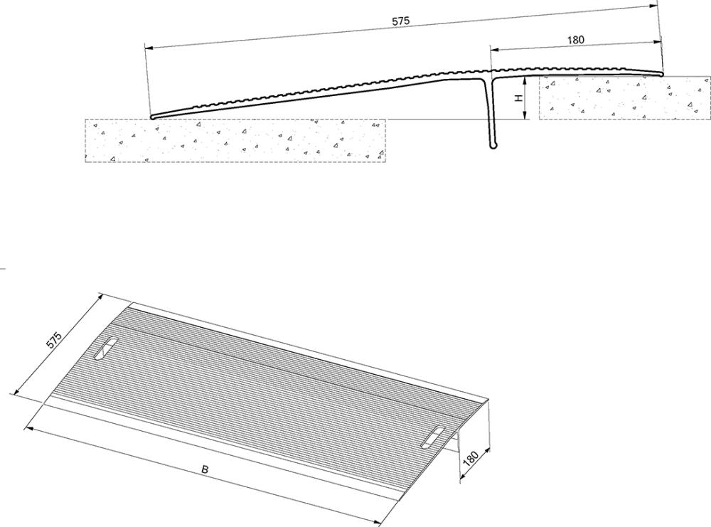Aluminium-Überfahrbrücke, Höhendifferenz gering