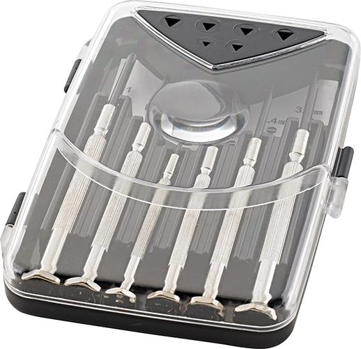 Uhrmacher-Schraubendreher-Satz, Schlitz/Kreuzschlitz, 6-teilig