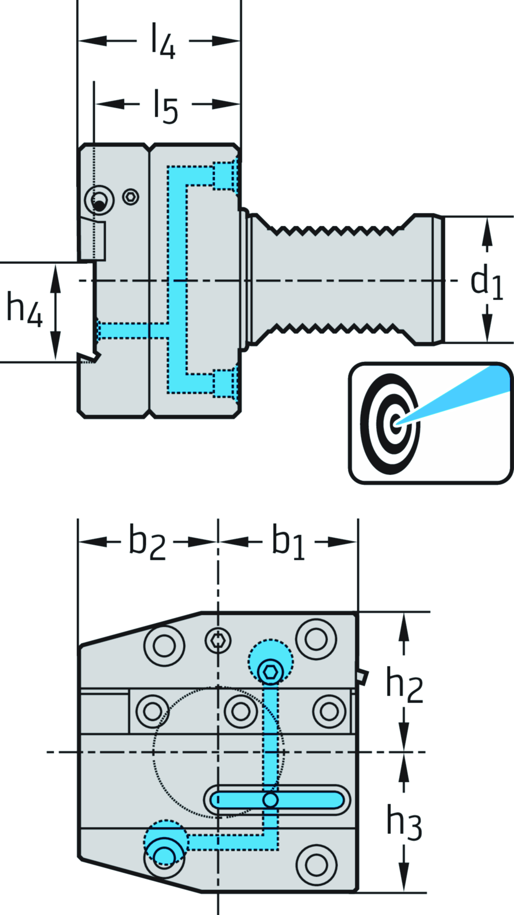VDI-Aufnahme – Stechklingen A2111-V...-P • metrisch • rechts • 26R • Präzisionskühlung