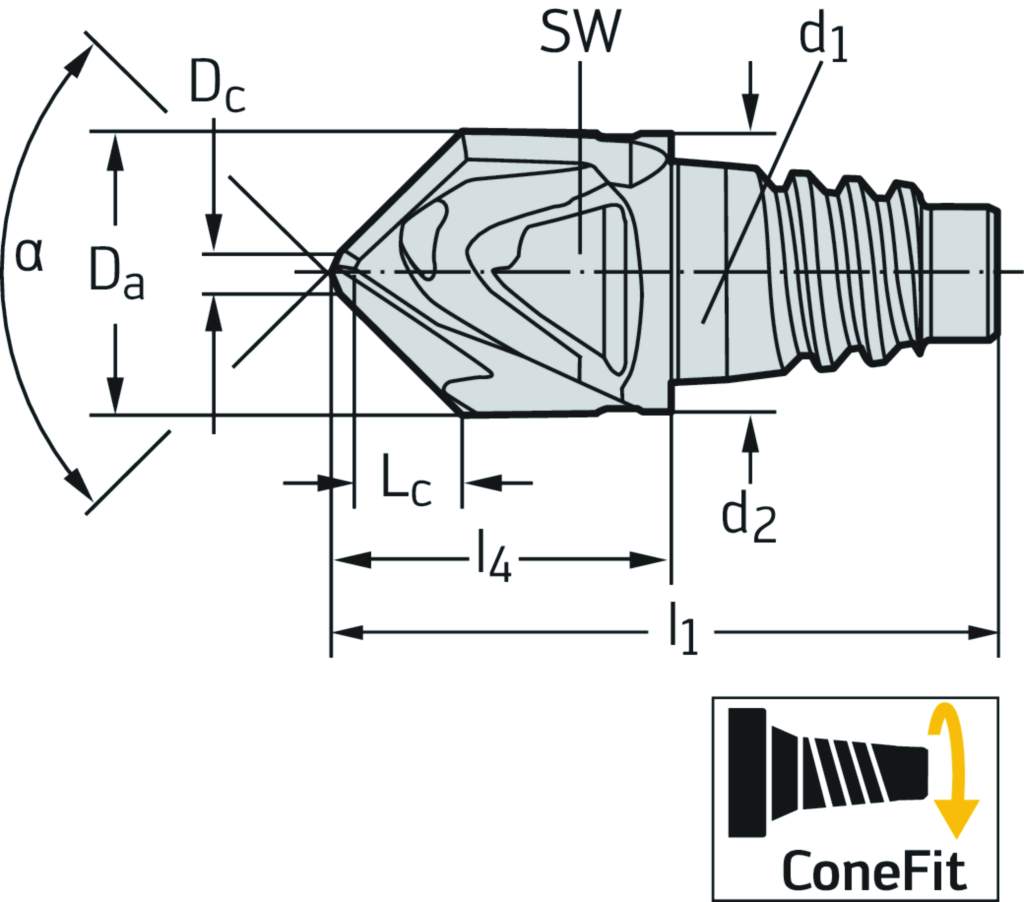 | Anzahl wirksamer Schneiden, stirnseitig: | 2 |