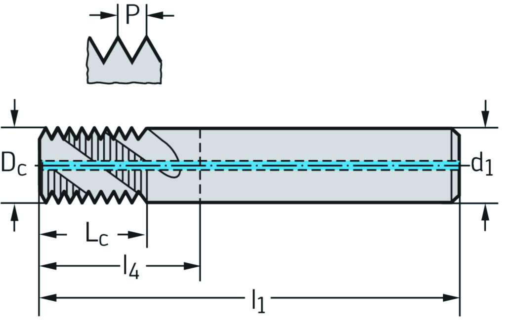 VHM-Gewindefräser • TMG Ni • NJ60 • TICN • ≤1,5xD • Schaft DIN 6535 HA • Kühlschmierstoffaustritt: axialer konzentrischer Austritt • Gangzahl je Inch=24 • Dc=6,2mm
