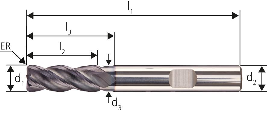 VHM-Schaftfräser, DIN 6527, Typ INOX, lang, Z4, Radius, Carapace+, FORTIS