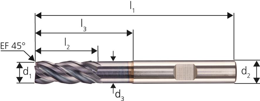 VHM-Schaftfräser, Werksnorm, Typ STEEL, extralang, Z4, Carapace+, FORTIS