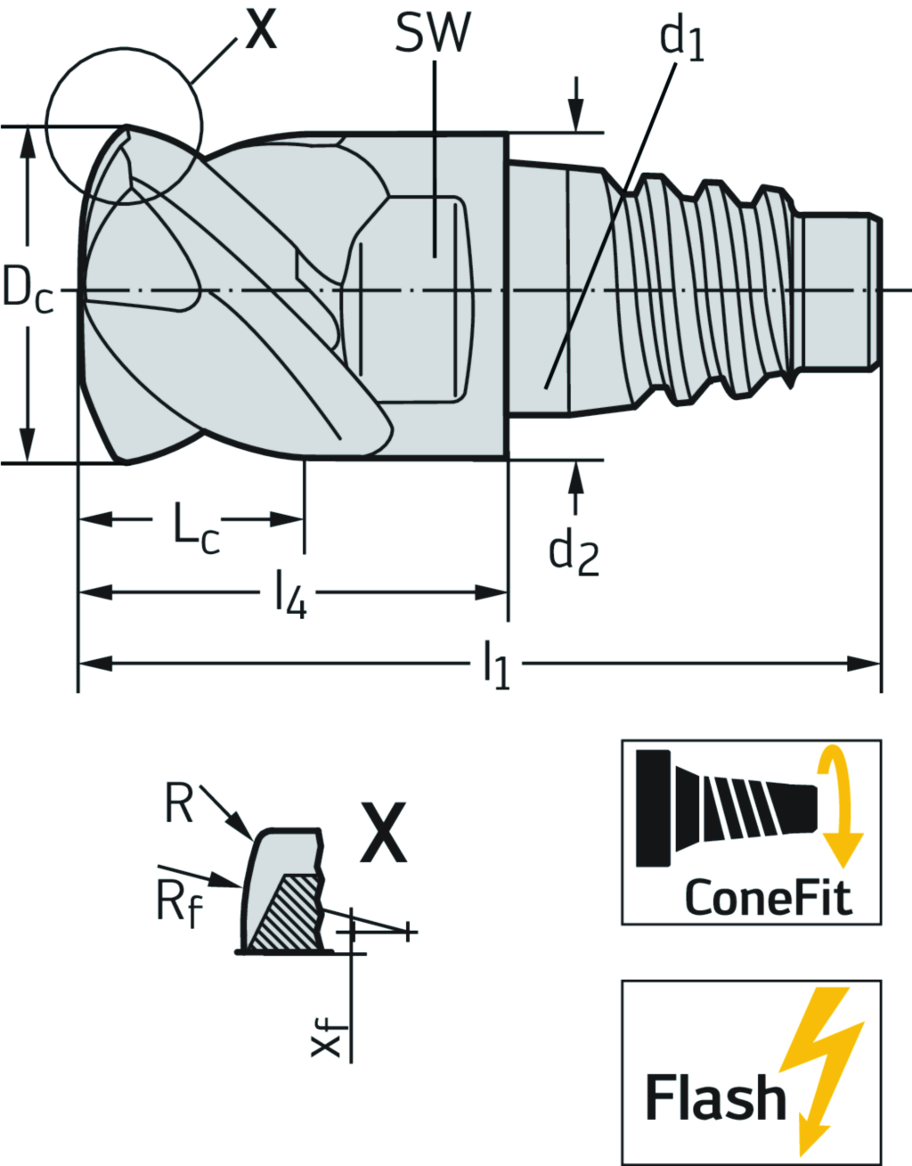 VHM-High-Feed-Fräser MC025 • Advance • ConeFit • metrisch • Drallwinkel 50° • WJ30TF • Dc=25mm • Z=4