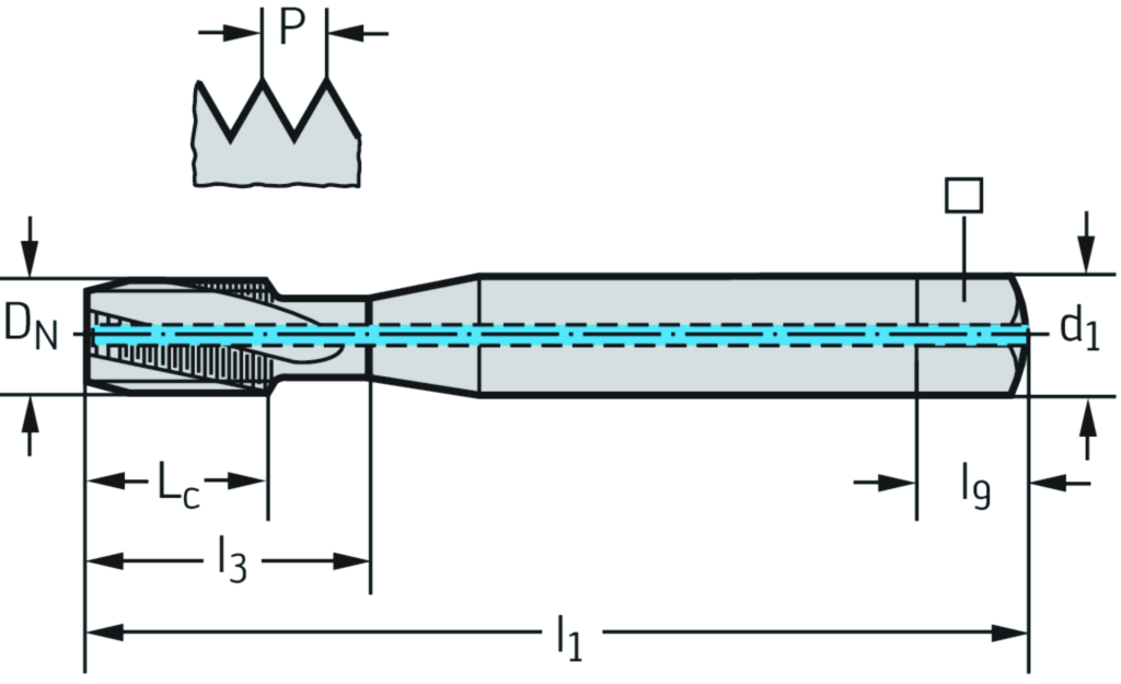 VHM-Maschinen-Gewindebohrer • Paradur® HSC • kurzer Anschnitt • ≤2xD • M/6HX • DIN 371 • rechtsgedrallte Nut 15° • geeignet für Grundloch • TICN • M 6 • P=1mm