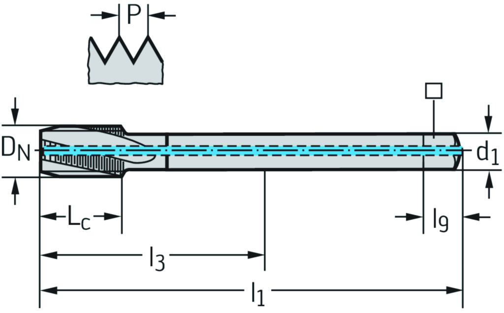 VHM-Maschinen-Gewindebohrer • Paradur® HSC • kurzer Anschnitt • ≤2xD • MF/6HX • DIN 374 • rechtsgedrallte Nut 15° • geeignet für Grundloch • TICN • MF 16x1.5 • P=1,5mm