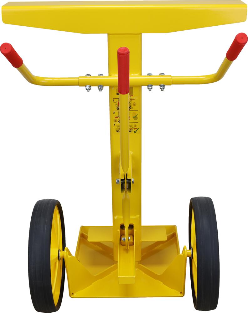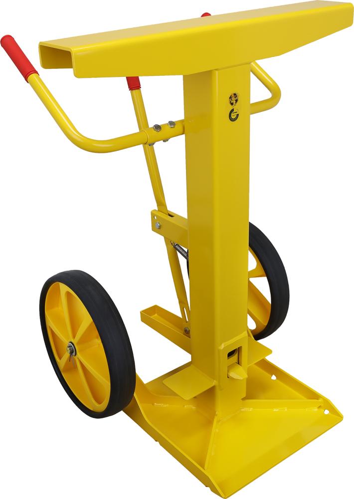 Diese Verladestütze ist hoch belastbar und für Sattelzüge bis 40 t Gesamtgewicht einsetzbar. Ein Kippen des Sattelzuges kann dadurch verhindert werden. Die zusätzliche Absicherung wird laut DGUV 208-006 und DGUV 208-009 von der Berufsgenossenschaft dringend empfohlen. • Material: Stahl, gelb lackiert • Höhenverstellung: von 1025–1344 mm mittels selbst justierender Gasdruckfeder • Bodenplatte: 470x425 mm, extra groß für eine sichere Anwendung. • Querholm: 760x120 mm, extra groß • Kunststoff Speichenfelge: mit Gummiüberzug, Ø 400 mm • TÜV-zertifiziert: konform mit DGUV 108-007 (früher BRG 234)