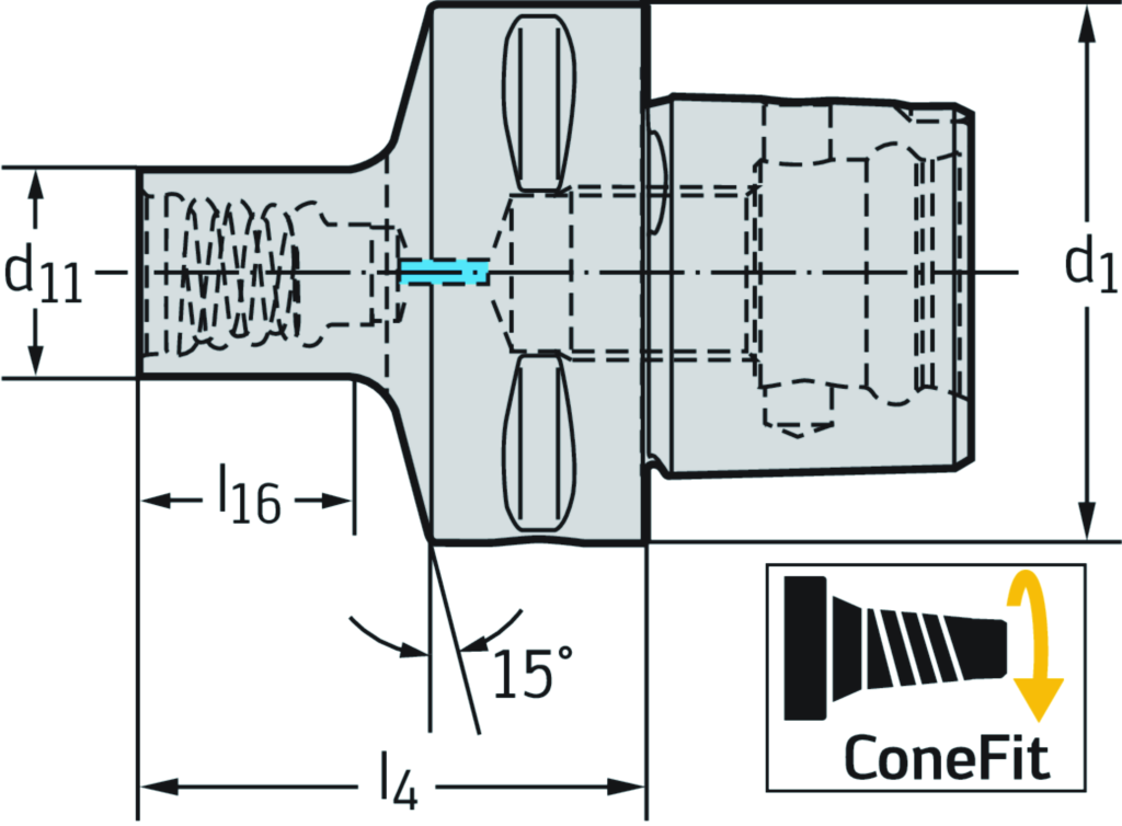 Walter CaptoTM-Aufnahme AK681 • metrisch • Für ConeFit-Fräsköpfe • ISO 26623 • d1=C6 • d11=E12