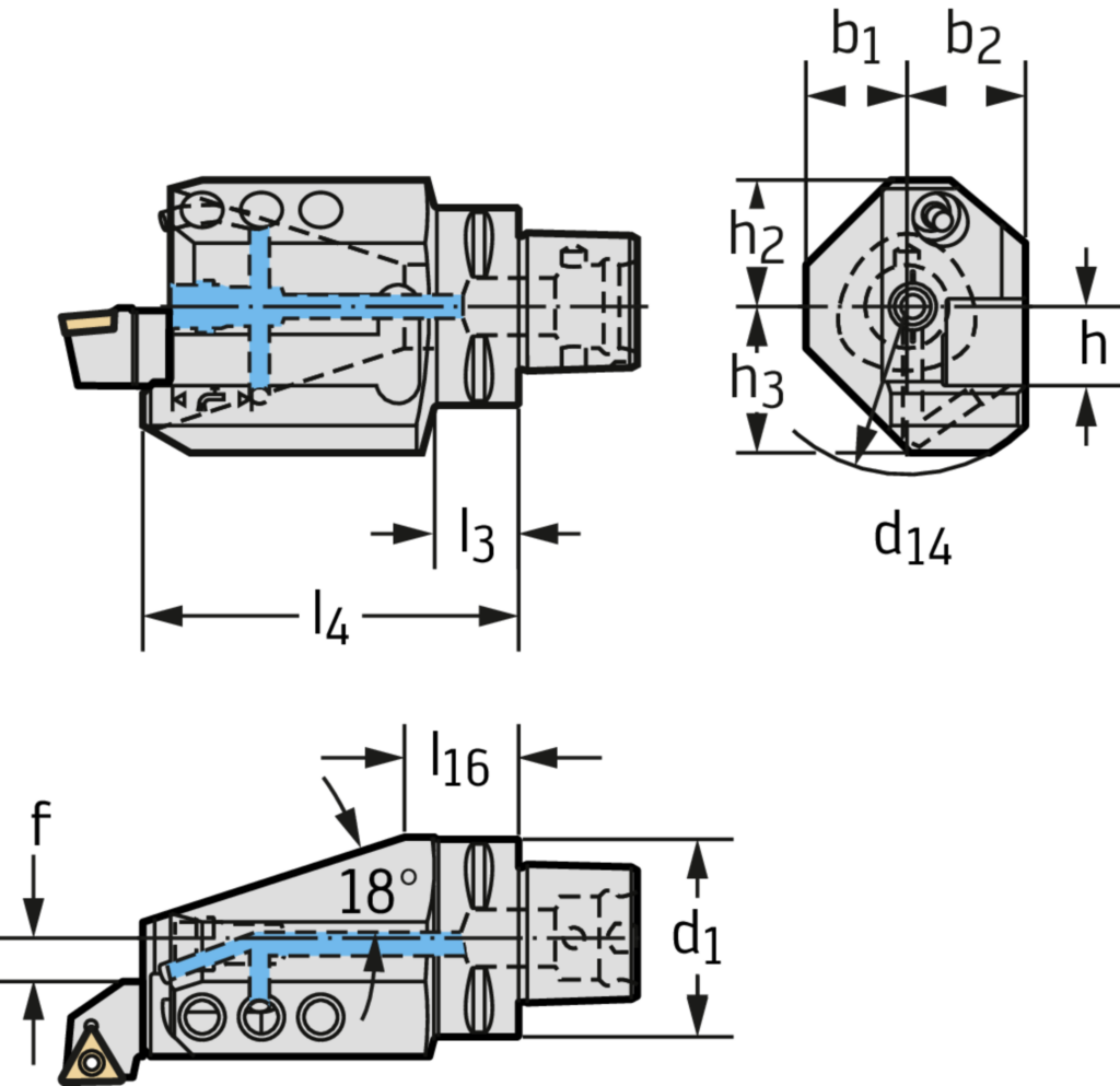 Walter CaptoTM – Axial Aufnahme A2120-C...-P • metrisch • Walter CaptoTM ISO 26623 • rechts • 63mm