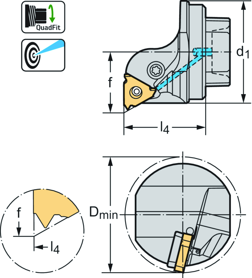 Wechselkopf – Innengewinde T1820-Q...-P • QuadFit • Präzisionskühlung • metrisch • rechts • 40mm