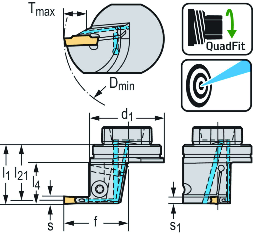 Wechselkopf – Innenstechen G4221-Q...-P • QuadFit • Für Accure·tec Bohrstangen • metrisch • QuadFit • links • DX18 • s=4mm • Tmax=12mm