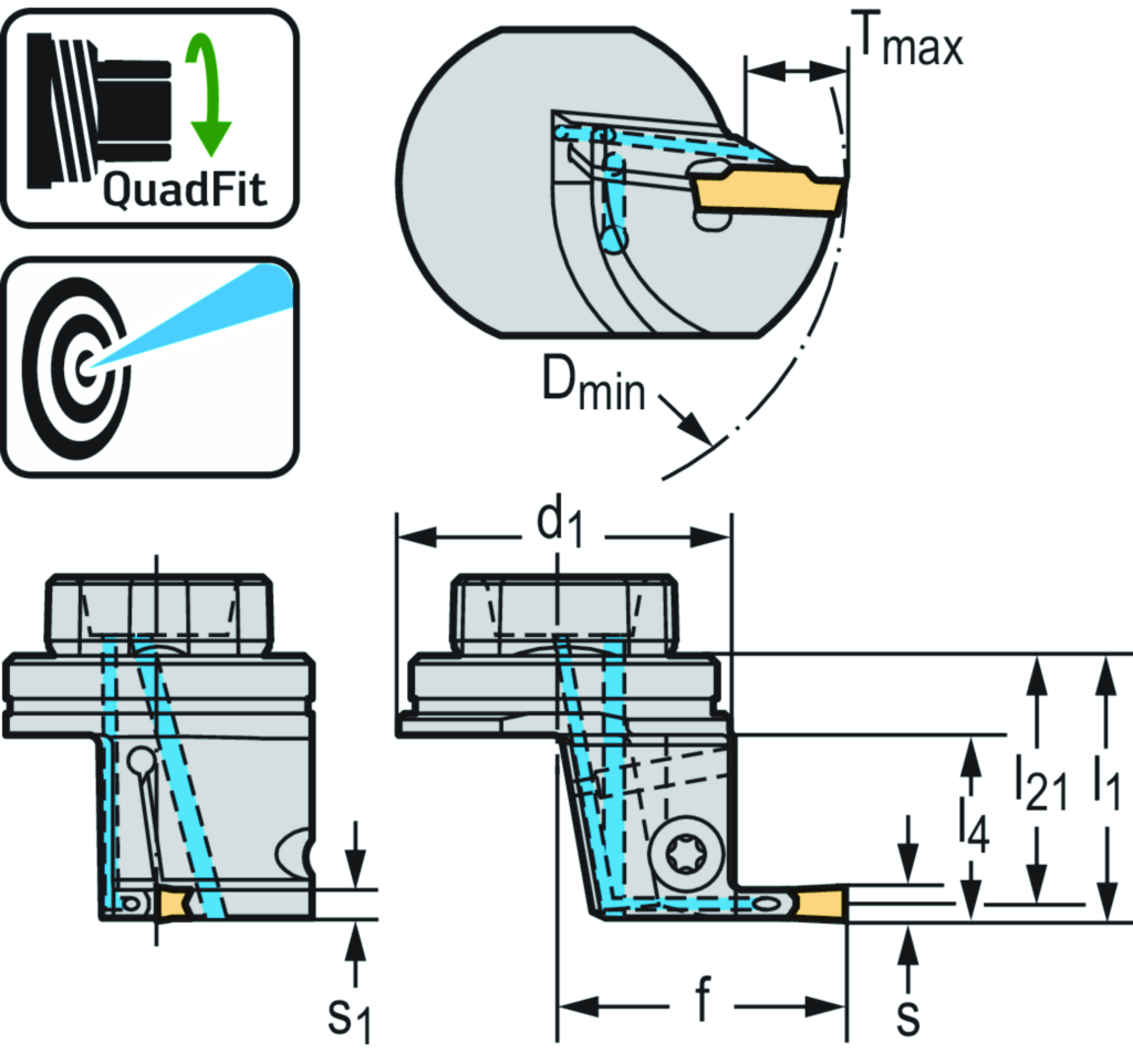 Wechselkopf – Innenstechen G4221-Q...-P • QuadFit • Für Accure·tec Bohrstangen • metrisch • QuadFit • rechts • DX18 • s=3mm • Tmax=12mm