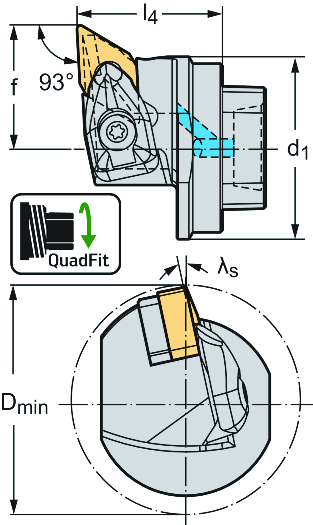 Wechselkopf – Pratzenspannung Q...-DDUN • Walter Turn • metrisch • QuadFit • links • rhombische Platte • DN .. 1506 ..