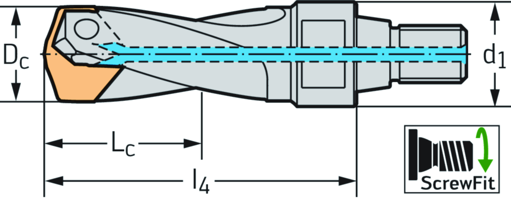 Wechselplatten-Bohrer D4140 • Drion·tec™ • ScrewFit • metrisch • 1,3xD • Spitzenwinkel 140° • Z=2 • Dc=18mm