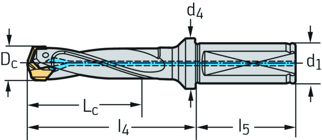 Wechselplatten-Bohrer D4140 • Drion·tec™ • Zylinderschaft mit Fläche • inch • 3xD • Spitzenwinkel 140° • Z=2 • Dc=34mm