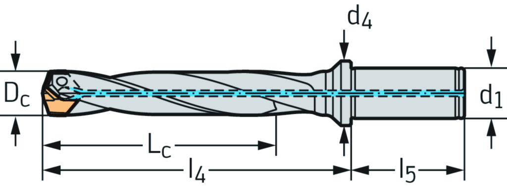 Wechselplatten-Bohrer D4140 • Drion·tec™ • Zylinderschaft mit Bund • inch • 5xD • Spitzenwinkel 140° • Z=2 • Dc=22mm
