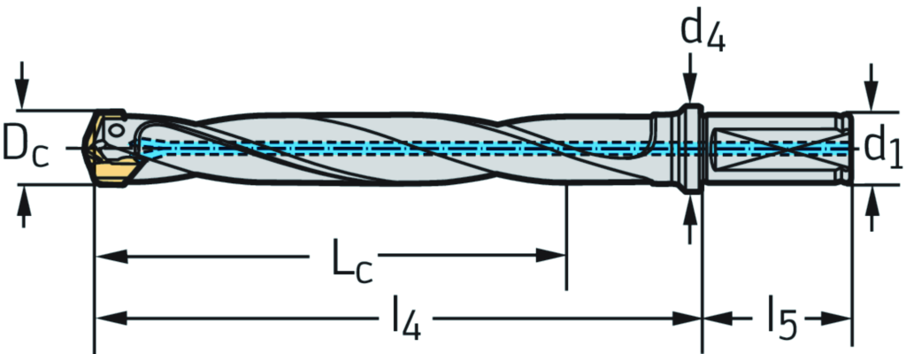 Wechselplatten-Bohrer D4140 • Drion·tec™ • Zylinderschaft mit Fläche • inch • 7xD • Spitzenwinkel 140° • Z=2 • Dc=36mm