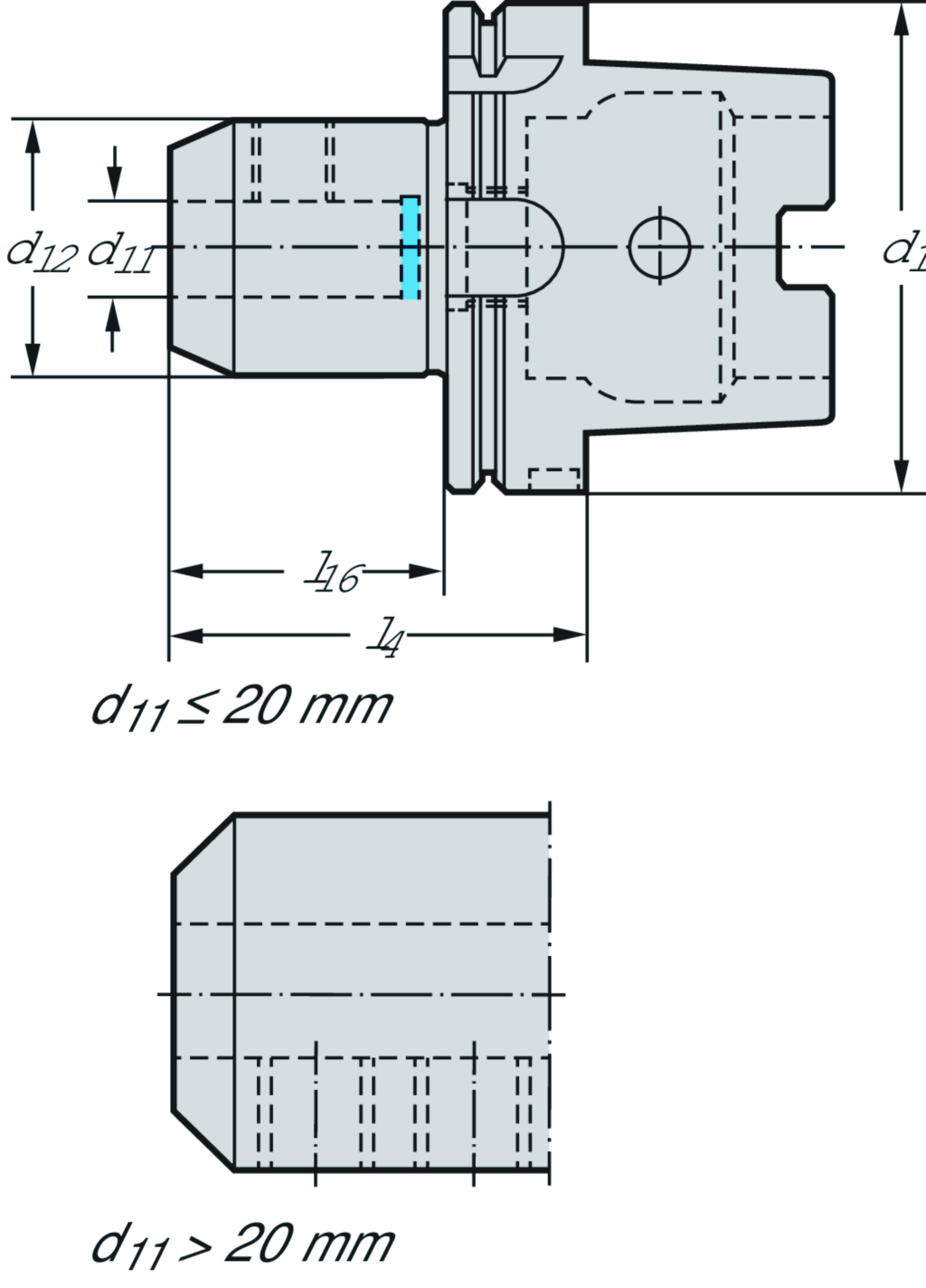 Weldon-Aufnahme DIN 69893-1 A A170...HSK • metrisch • Für Werkzeuge mit Schaft nach DIN 1835 Form B • d1=100 • d11=12