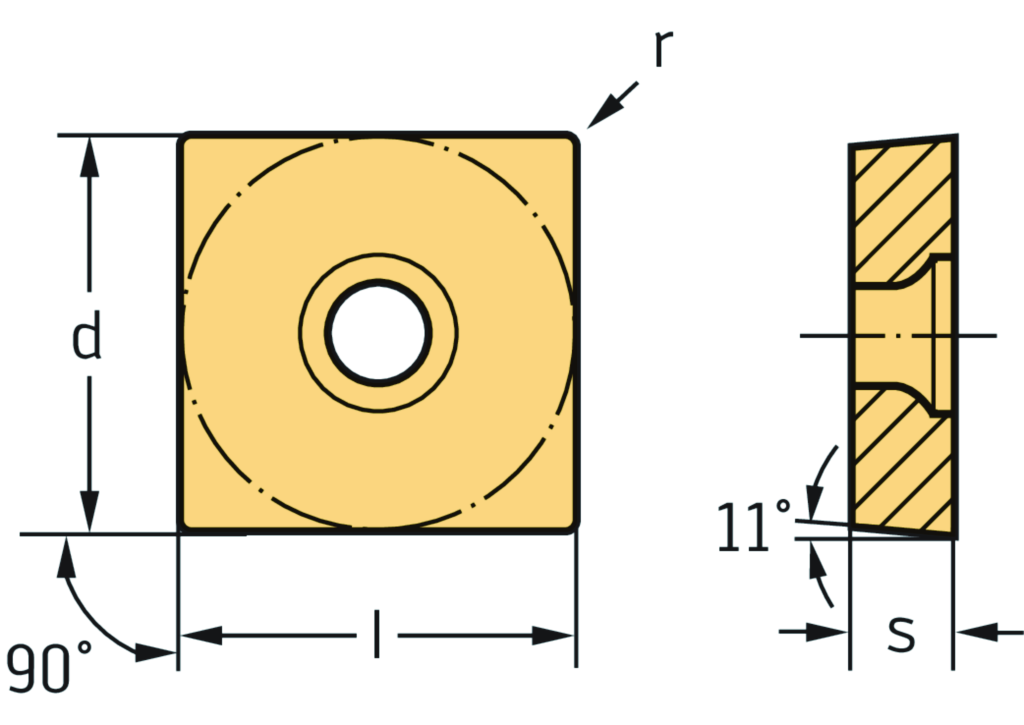 | Ausführung und Anzahl bestückter Schneidenecken: | S |