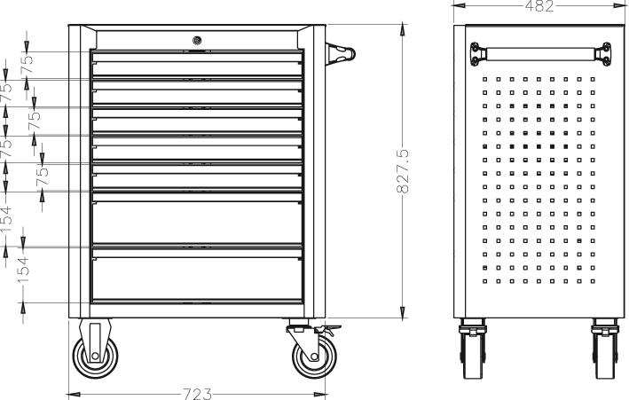 | Abmessungen L x B x H: | 723 x 482 x 827,5 mm |