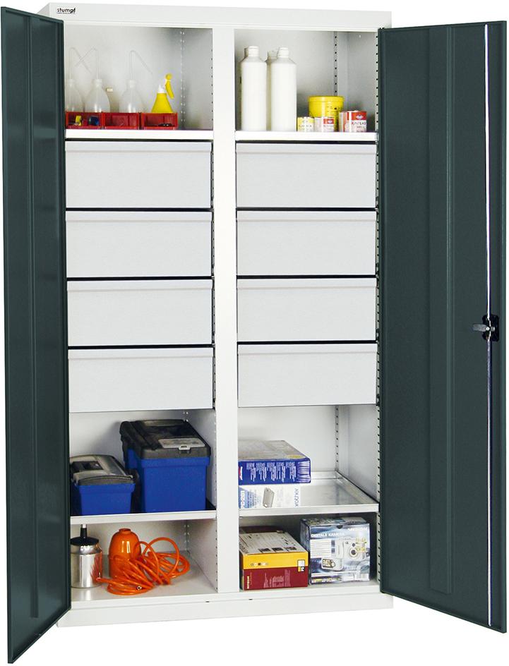 Werkzeug- und Materialschrank Serie 2000, 8 Schubladen, 4 Fachböden, Mitteltrennwand